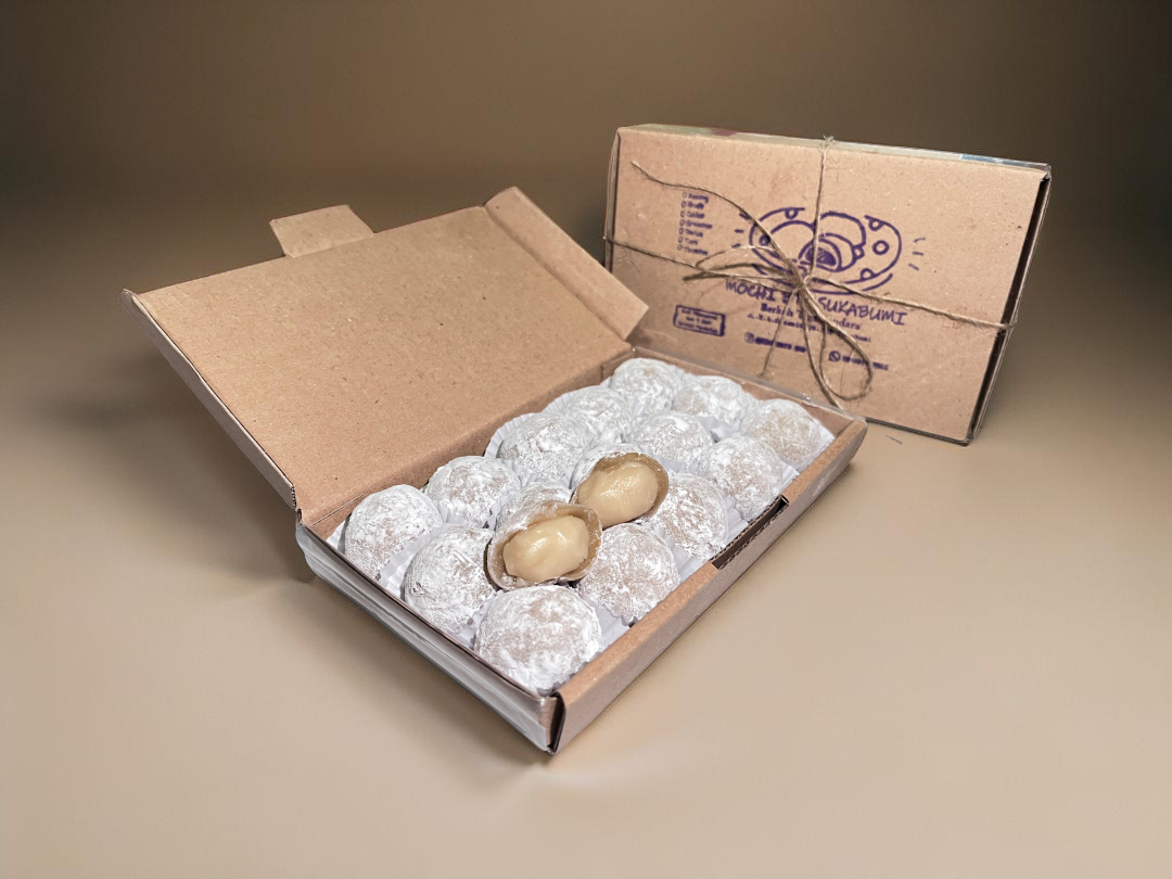 Berisi 15 pcs mochi dengan isian selai tiramisu. Perpaduan rasa kopi dan krim yang seimbang memberikan pengalaman menikmati dessert tiramisu yang menggoda.1